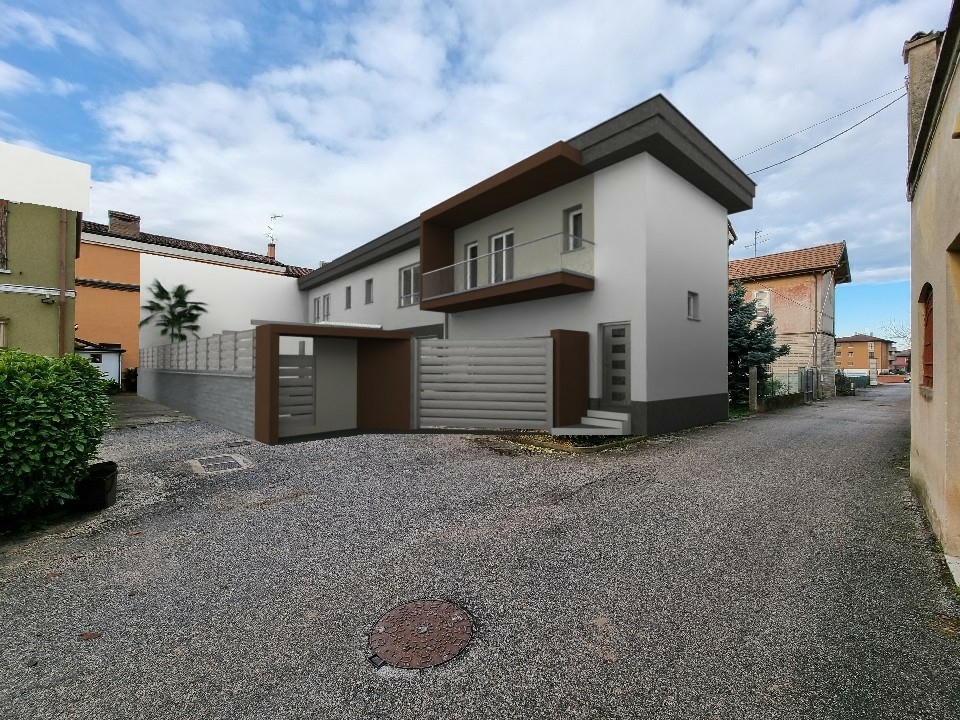 La demolizione e ricostruzione dell’unità edilizia preesistente, fatiscente, non sicura e non adeguata agli standard energetici della città contemporanea hanno quasi imposto la committenza ad un radicale intervento ma proponendo il “nuovo” volume dell’edificio solamente lungo il confine nord rispettando le altezze e la sagoma preesistente ma “eliminando” parte del volume dal fronte sud, dando maggiore spazi aperti antistanti l’edificio e alleggerendo il volume del nuovo edificio rispetto all’area di sedime dell’edificio preesistente.