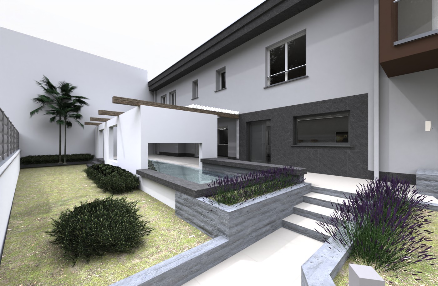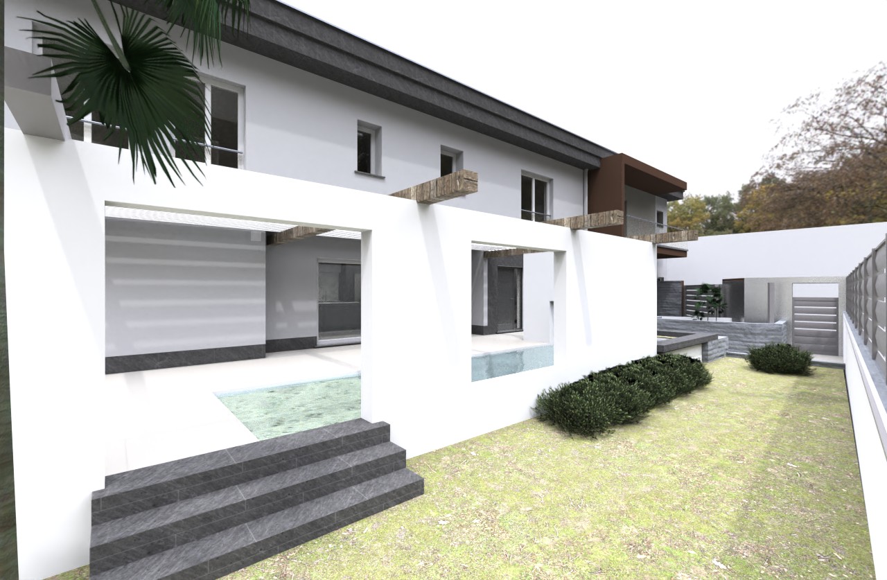 La nuova unità edilizia così concepita ben si armonizza con quella limitrofa già esistente liberando lo spazio antistante, prediligendo, quindi, gli spazi aperti, dando vita alla creazione di un giardino esterno pertinenziale, e due posti auto in garage coperto.